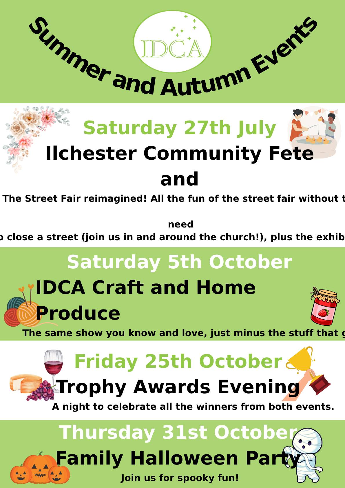 DOWNLOAD A FREE POSTER TO SHARE: Ilchester Community Fete 27th July, 2024 (poster no.1) (526 downloads ) DOWNLOAD A FREE POSTER TO SHARE: Ilchester Events in 2024 (poster no.2) (495 downloads )
